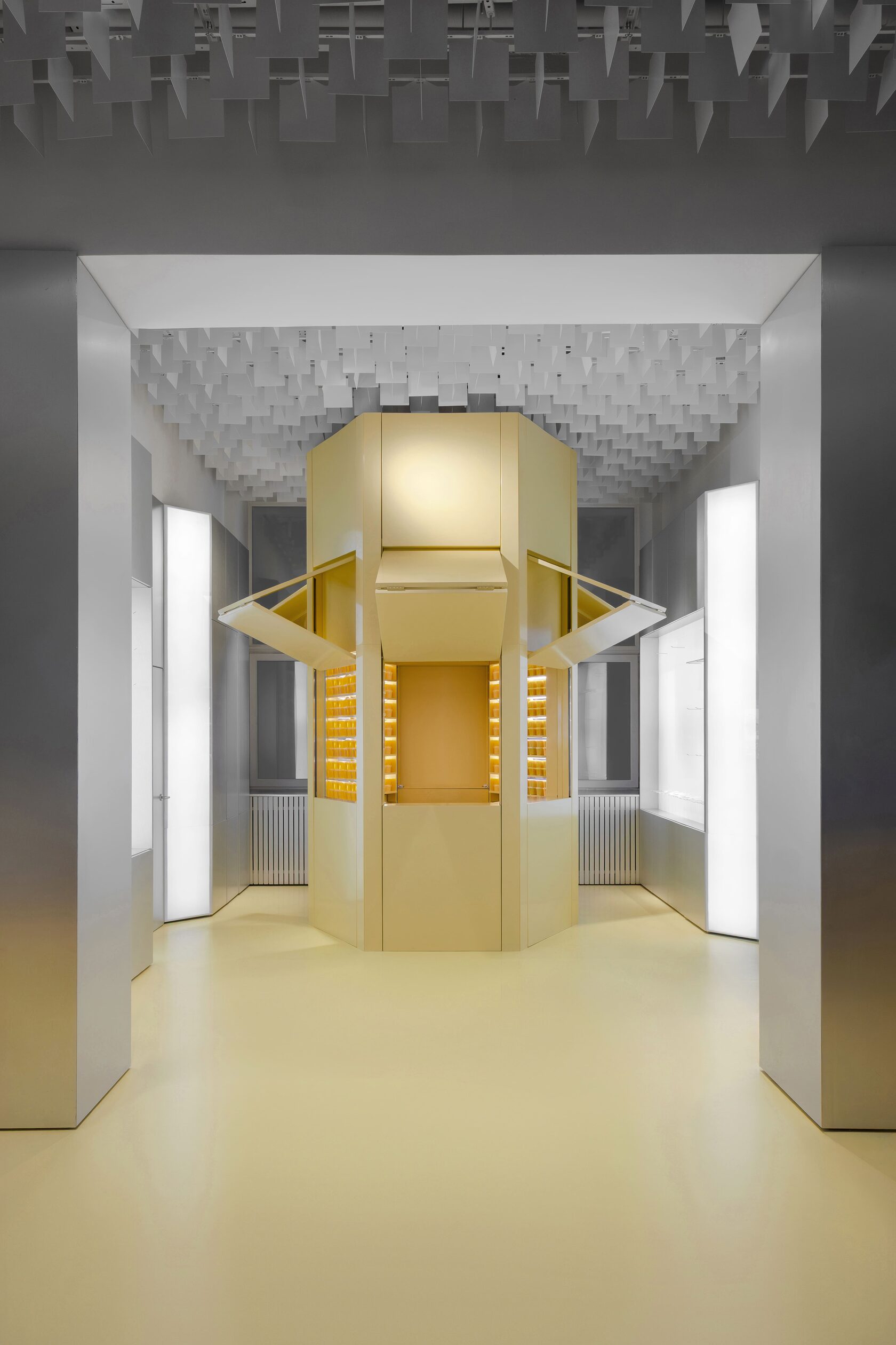 Обновленное пространство музея выстроено вокруг двух образов — шестигранника, отсылающего к пчелиным сотам, и желтого цвета, навеянного работами из пыльцы Вольфганга Лайба. О том, как создавался проект, мы поговорили с сооснователем бюро .dpt Ксенией Караваевой.