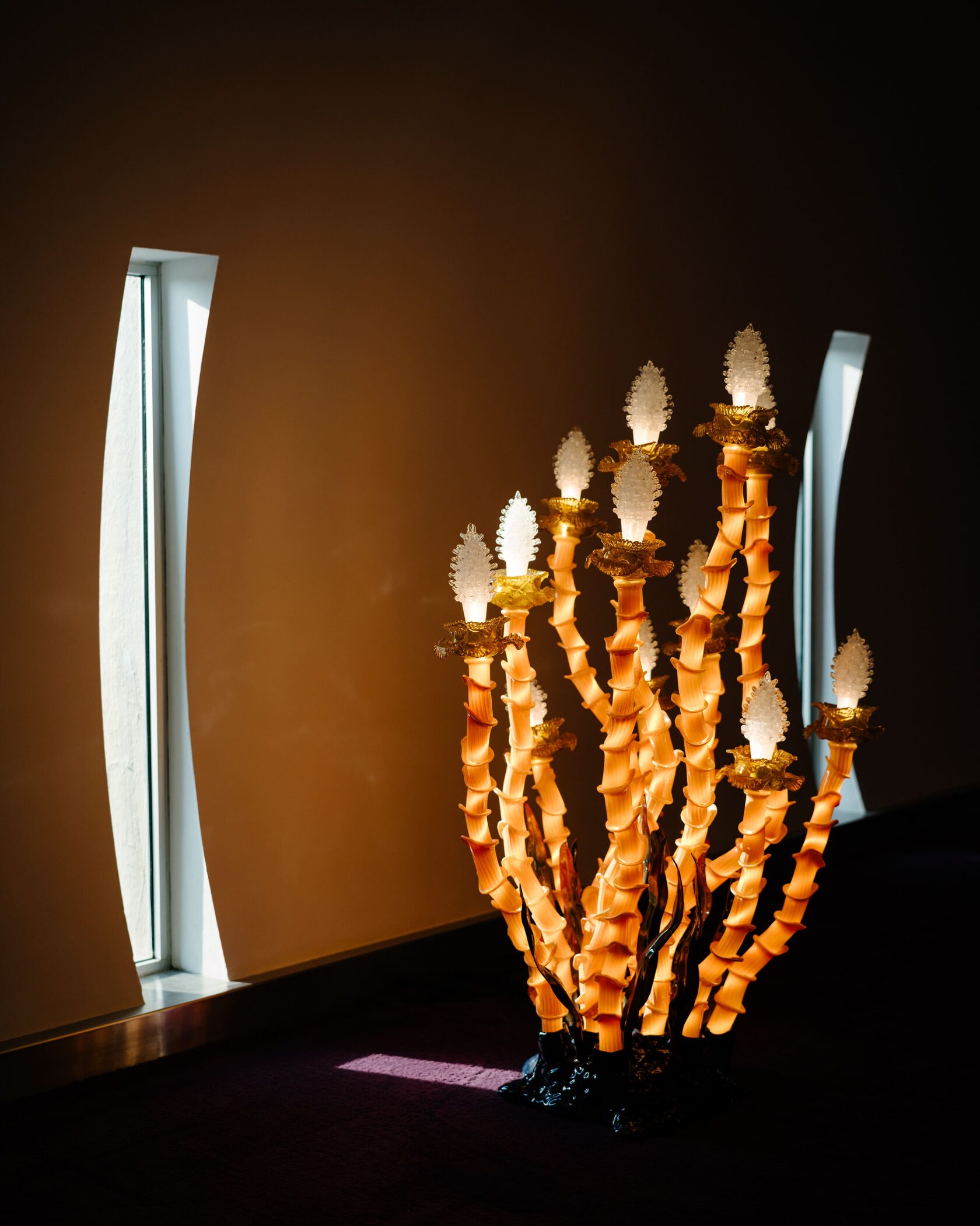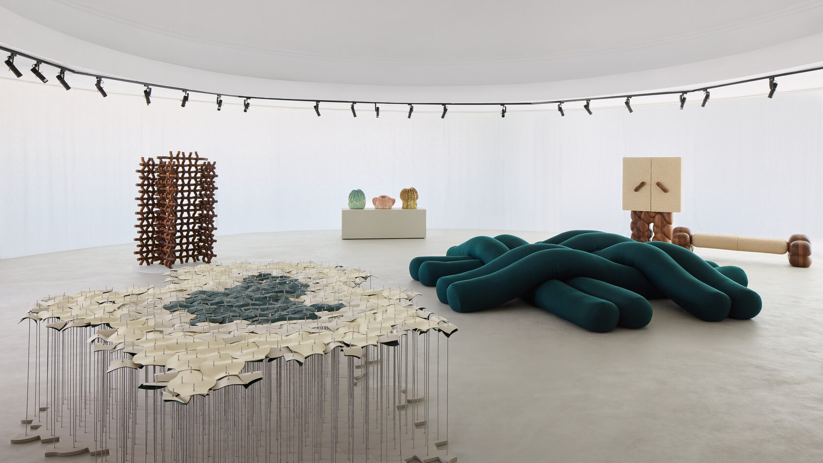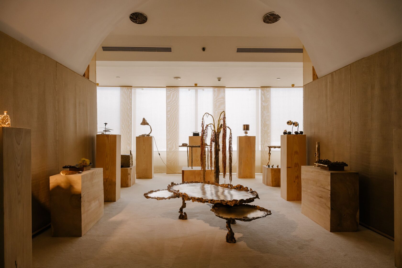 Здесь же, среди подсвеченных изогнутых стен, представлены исторические предметы Джо Понти вместе с работами Осанны Висконти, StudioDanielK и дубайской студии Etereo. Стенд итальянской галереи Нины Яшар становится захватывающим размышлением о том, как дизайн может хранить память и стремиться в будущее.