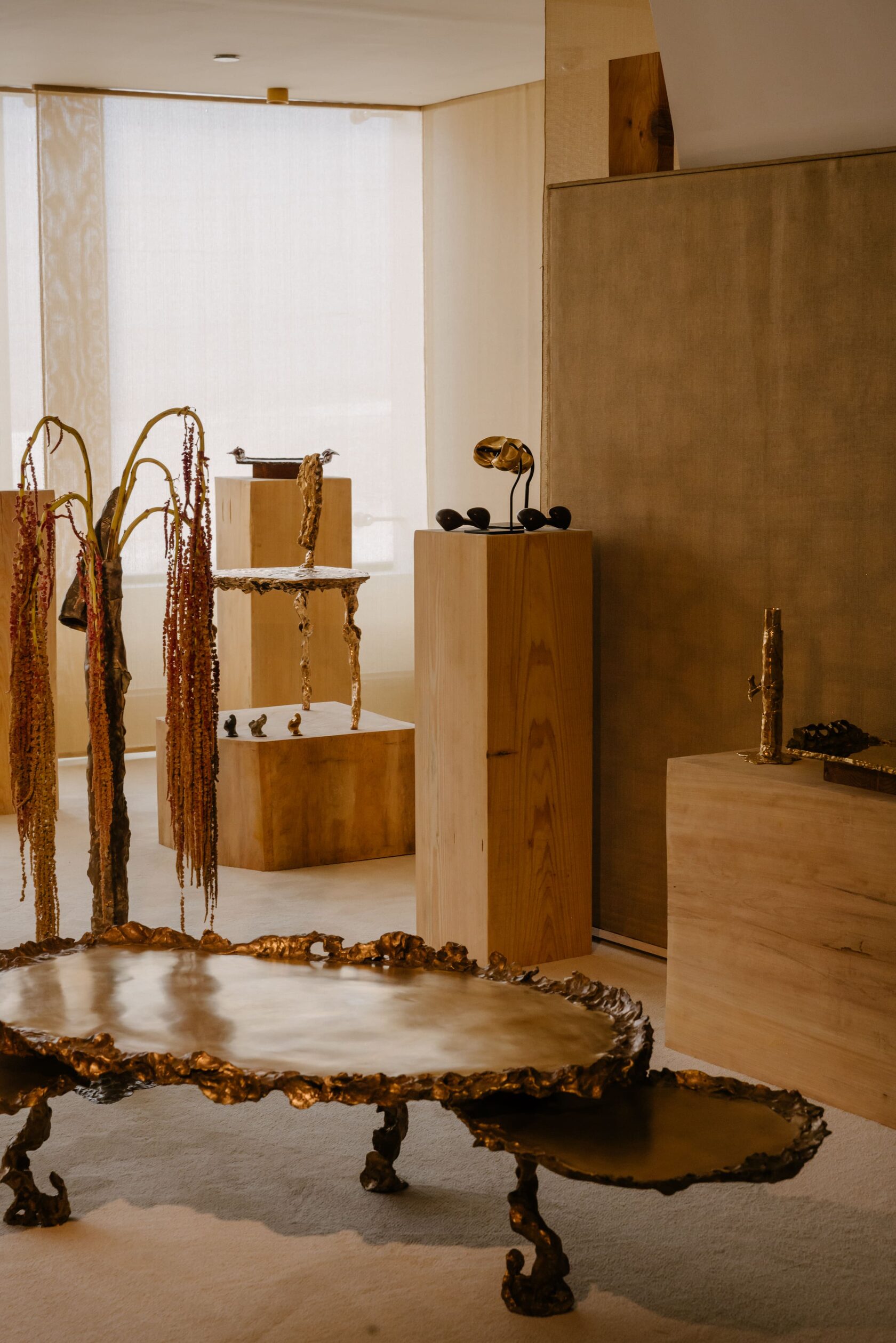 VAGUJHELYI — междисциплинарная студия Диего Вильярреаля Вагужелуйя, в основном сосредоточенная на создании скульптурных объектов из нержавеющей стали и бронзы. Таким образом основатель исследует темы наследия, ритуалов и идентичности. Его дебютный на NOMAD стенд, получивший название Postura («Поза»), объединил бронзовые формы, которые становятся не только предметами, но еще и примером того, каким может быть современное искусство.