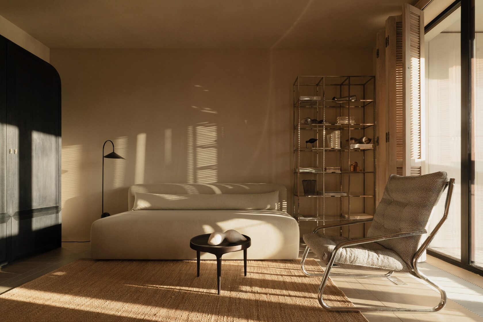 Шкаф, Plümo Studio; диван, Woodfans; торшер, FERM LIVING, L’appartement; столик, COPENHAGEN, L’appartement; декор на столике, Troubadour; ковер, Persepol.