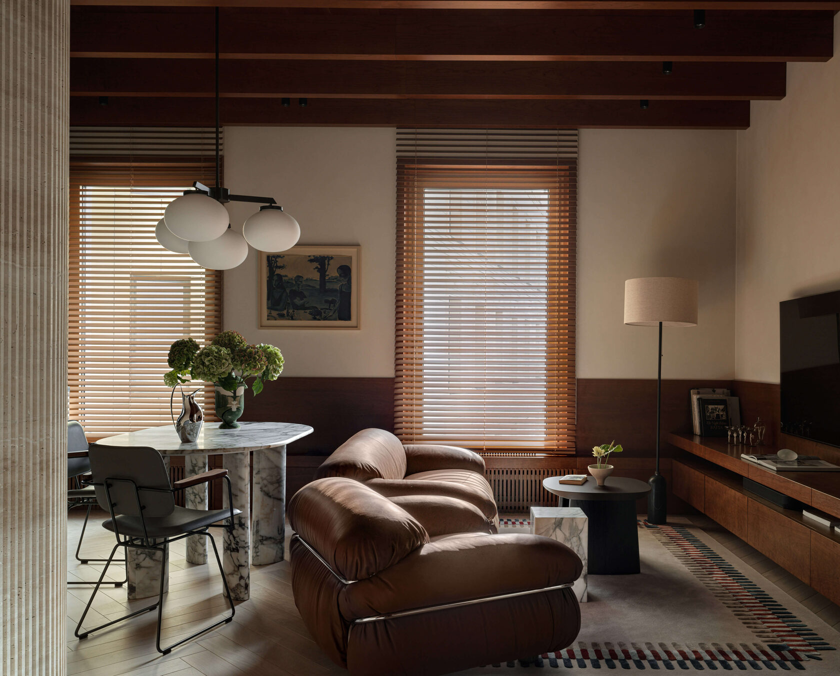 «Пожелания совпали с нашими методами. Мы у себя в команде называем это „старческим минимализмом“, — смеясь отмечает Елена. — С одной стороны, мы делаем минималистичные проекты, а с другой — очень теплые. Мне кажется, это и описывает все, что вы тут видите. Пространство вроде бы простое, нет ничего, за что глаз бы мог зацепиться. Но такая коробка позволяет считываться деталям. В такой интерьер всегда встанет все, что угодно, потому что он нейтральный. Его можно наполнить в любой момент».