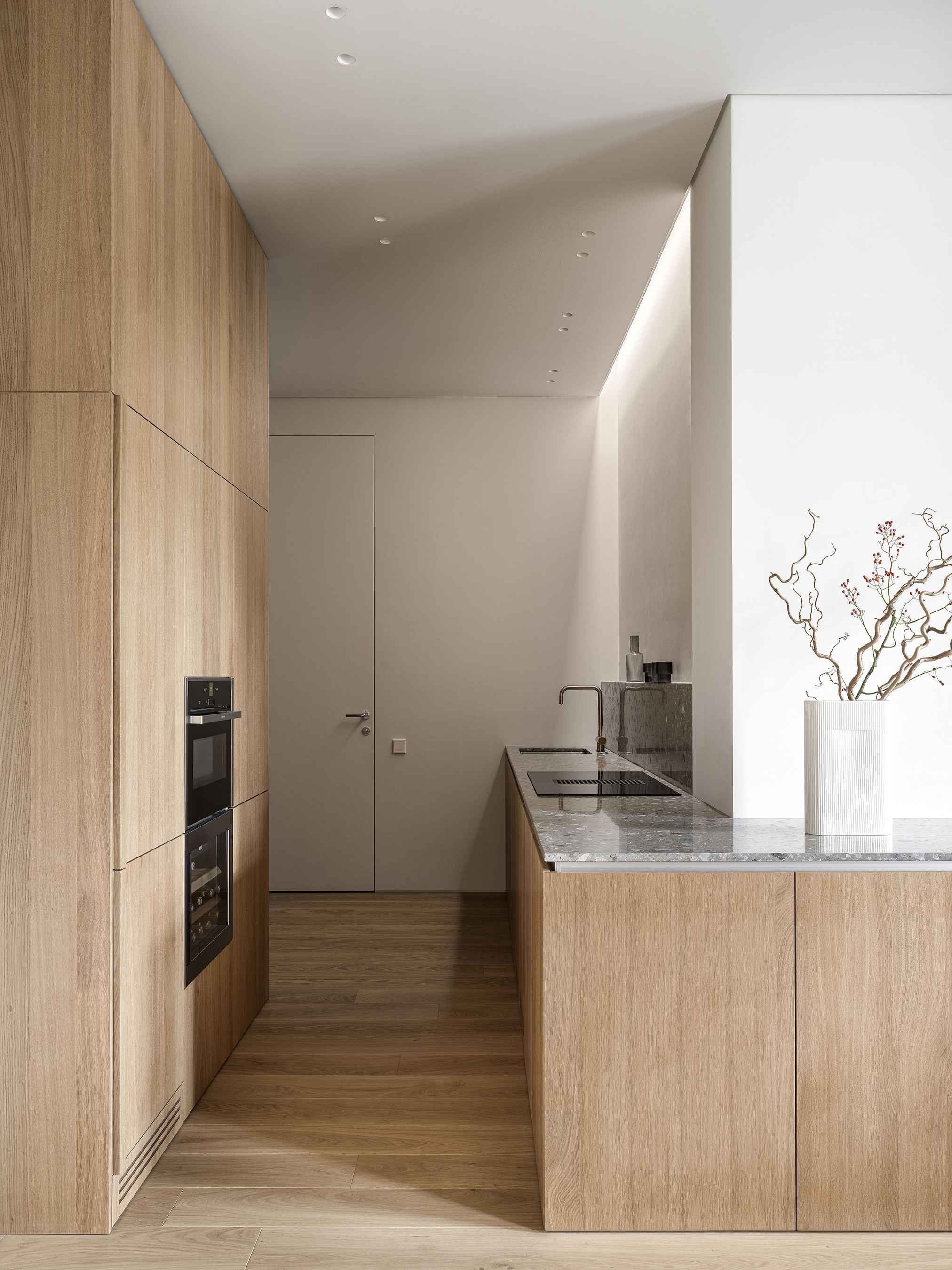 «Мебель и аксессуары выбраны с учетом своей значимости и художественных характеристик. Отсутствие излишеств уравновешивает интерьер и создает чистоту восприятия. Это не просто физическое пространство, а сбалансированное сочетание времени, стиля и функциональности, это не только среда обитания, но и основа для жизни», — делится команда.