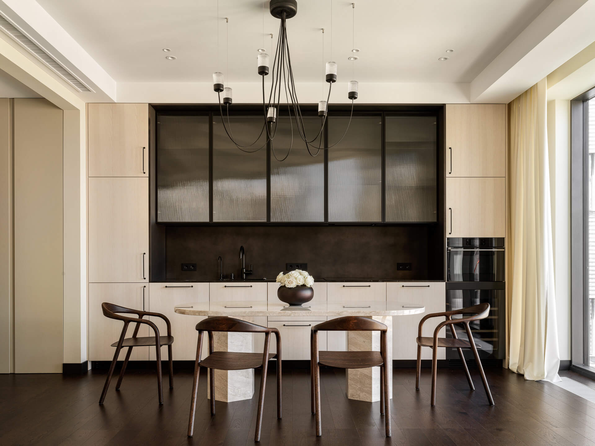 Кухня и столовая. Кухня изготовлена на заказ по эскизу KOS Studio; свет, Moooi; ваза по дизайну стилиста Колина Кинга, AUDO.