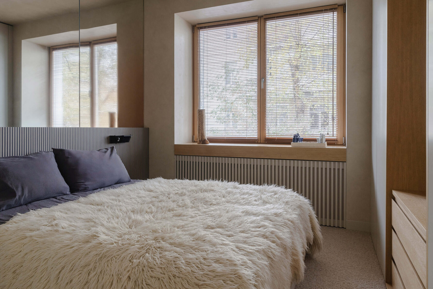 Изначально, по словам Саши, санузел хотели отделать черно-белым мрамором, но в итоге он остался в нейтрально-бежевых тонах, как и вся квартира, тем не менее шахматы там все же появились — доска вмонтирована в скамью. «Когда мы приходим к ребятам, так получается, что все вечеринки действительно заканчиваются в туалете. Там есть даже ниша под ведро с шампанским. Изначально ее сделали в качестве шутки в самом начале проекта, но в итоге она осталась».