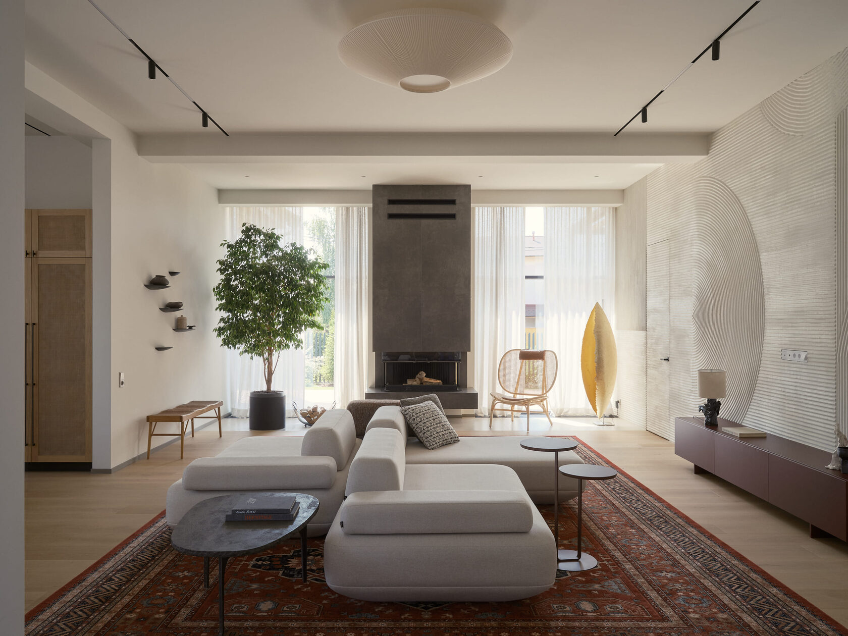 На 450 квадратных метрах — именно такая площадь у дома — легко нашлось место и навыкам, и амбициям, и духу единения. «Я подключилась еще на стадии проектирования, когда архитектор уже начал работать над функциональной частью, — вспоминает Наталия. — Мы взаимодействовали как единая команда: архитектор отвечал за конструктив, а я — за логику интерьера, эргономику и комфорт планировочных решений».