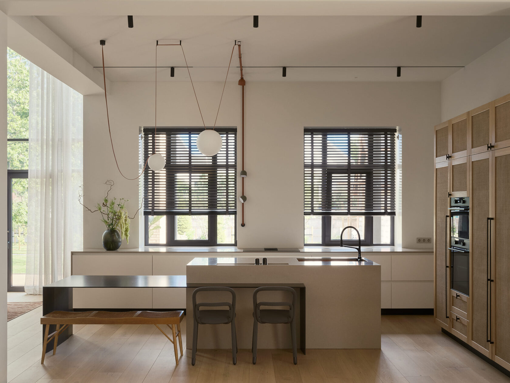 Пространство кухни. Подвес над кухней, Vibia; лавка, Zara home; стулья, Midj.