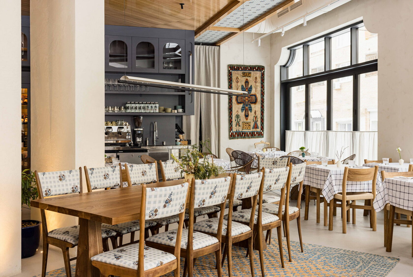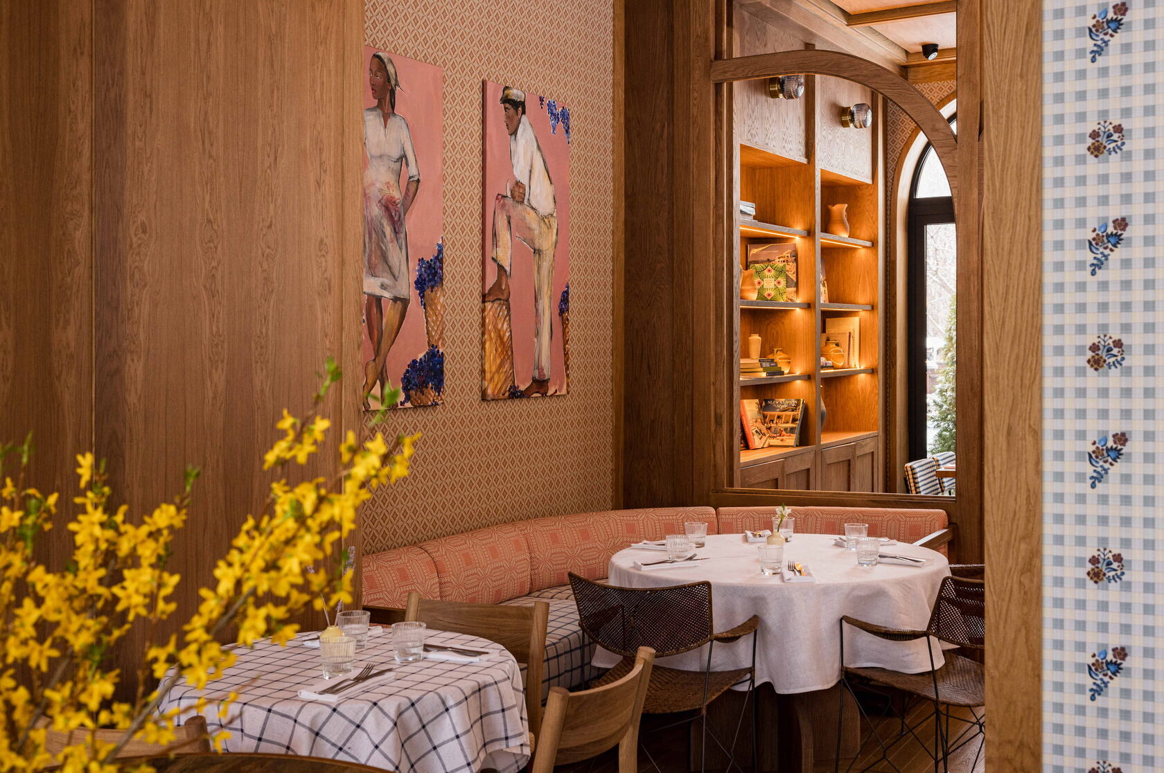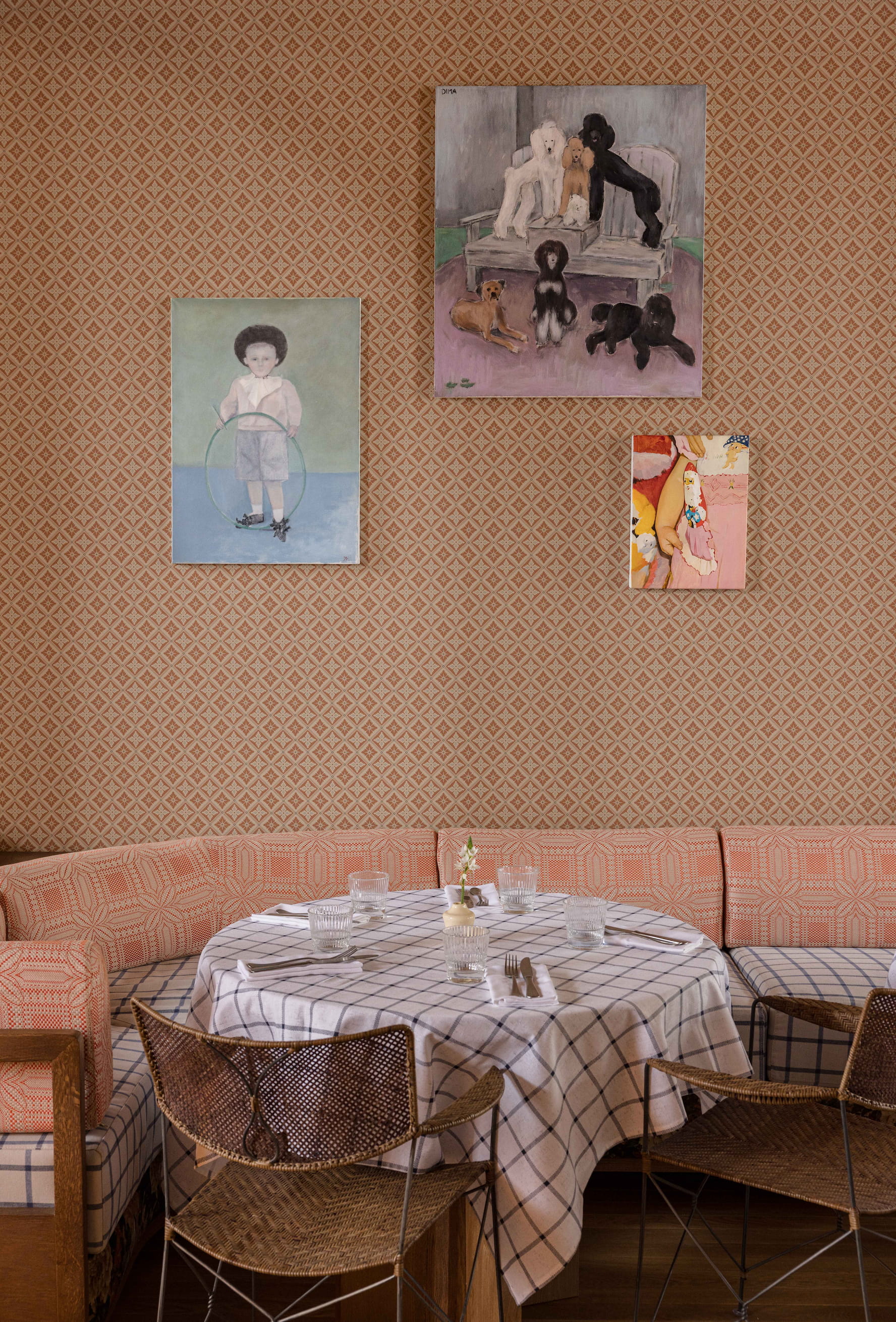Кроме того, интерьер дополняет картина «Сплетницы» Елизаветы Пугачевой и отсылает к работе Екатерины Щегловой «Греческие бабушки» из первого ресторана EVA. А яркий диптих Миланы Елкановой «Сбор винограда» навевает мысли о Греции — стране, которая славится виноградарством, виноделием и отличается простотой быта.