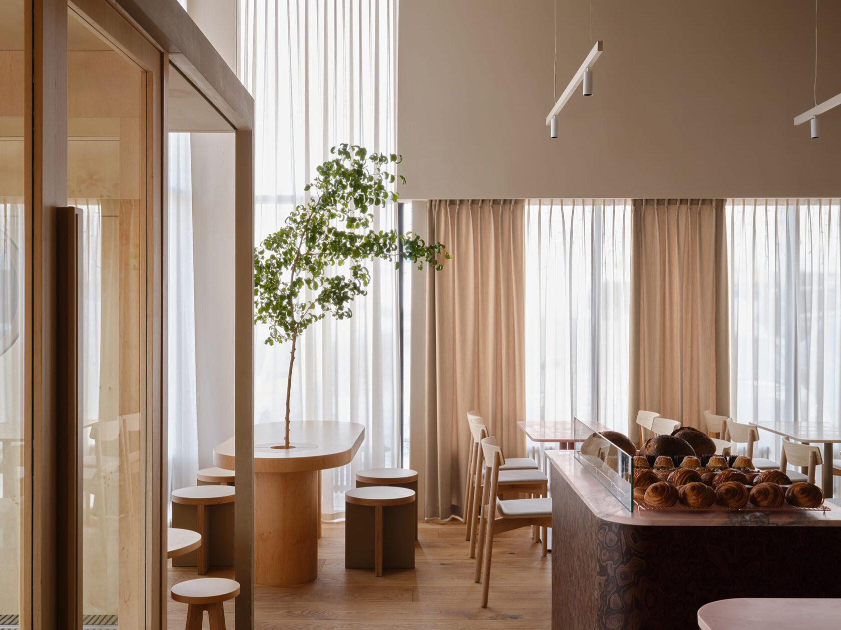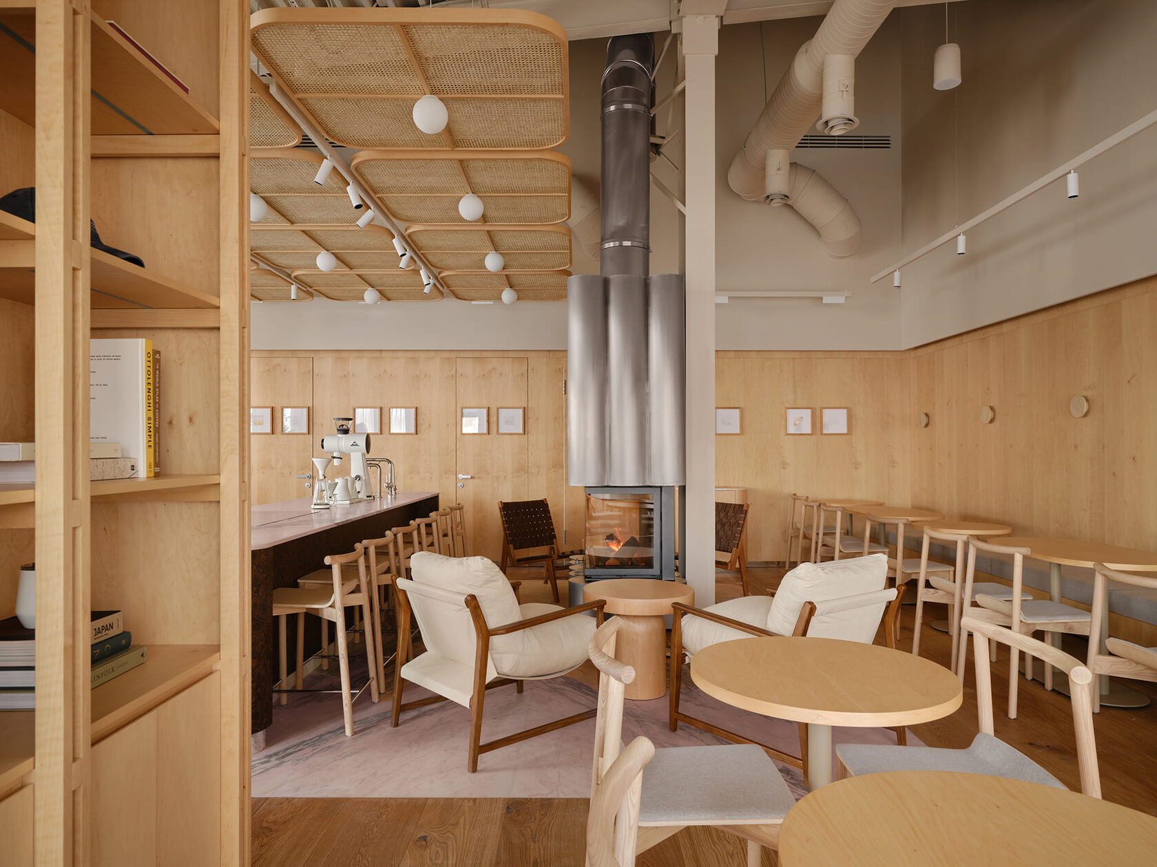 Сама команда называет проект ABC House. И это действительно почти дом — со своим дровяным камином, у которого приятно собраться вечером, и размеренным ритмом, привычным для загородной жизни. Заведение на Новой Риге создавалась по концепции all‑day dining: утром здесь можно позавтракать без суеты, днем — встретиться с семьей, а после — расслабиться с коктейлем в компании друзей и близких. Создать необходимую атмосферу помогли архитекторы бюро Le Atelier, которые