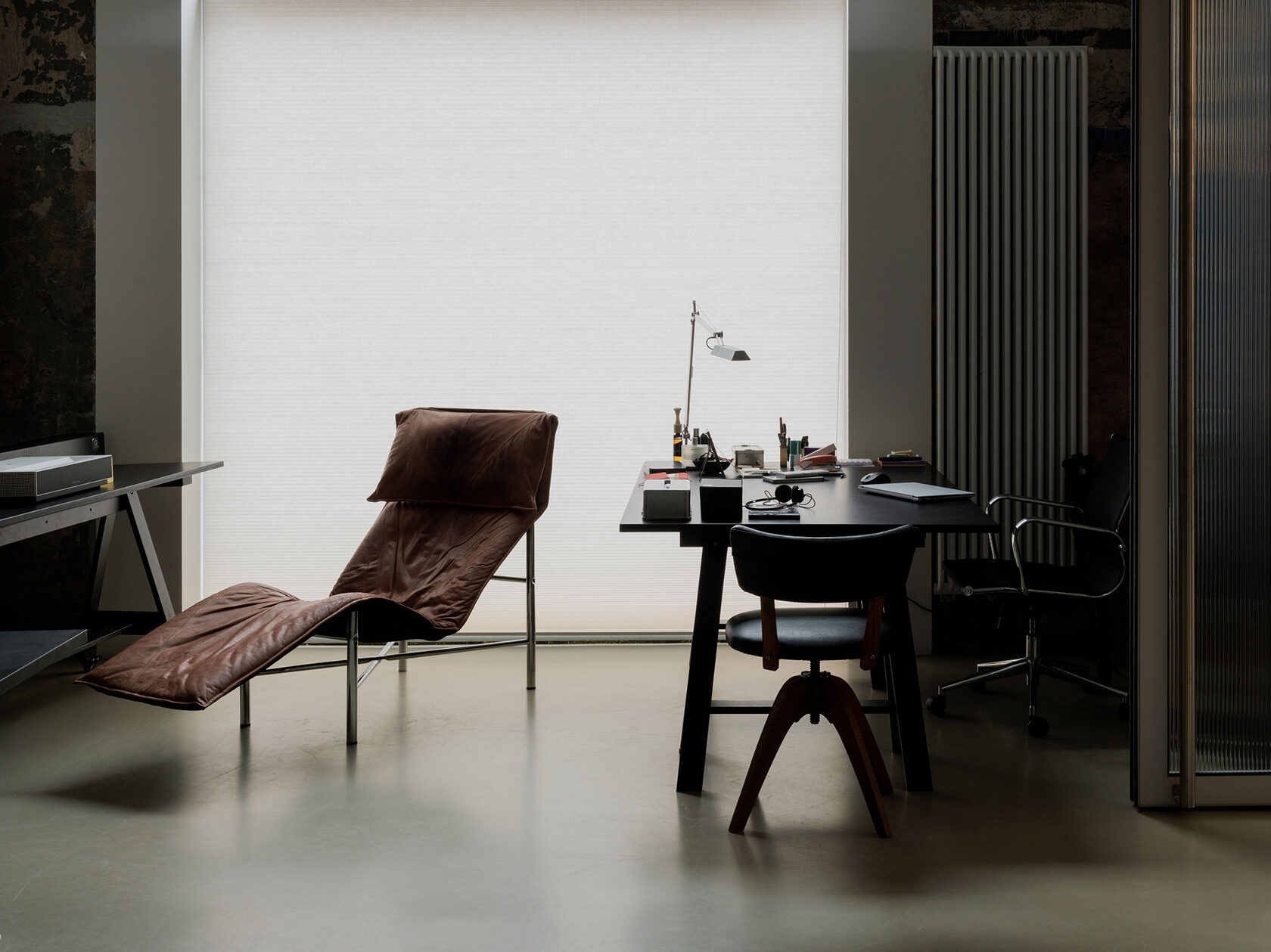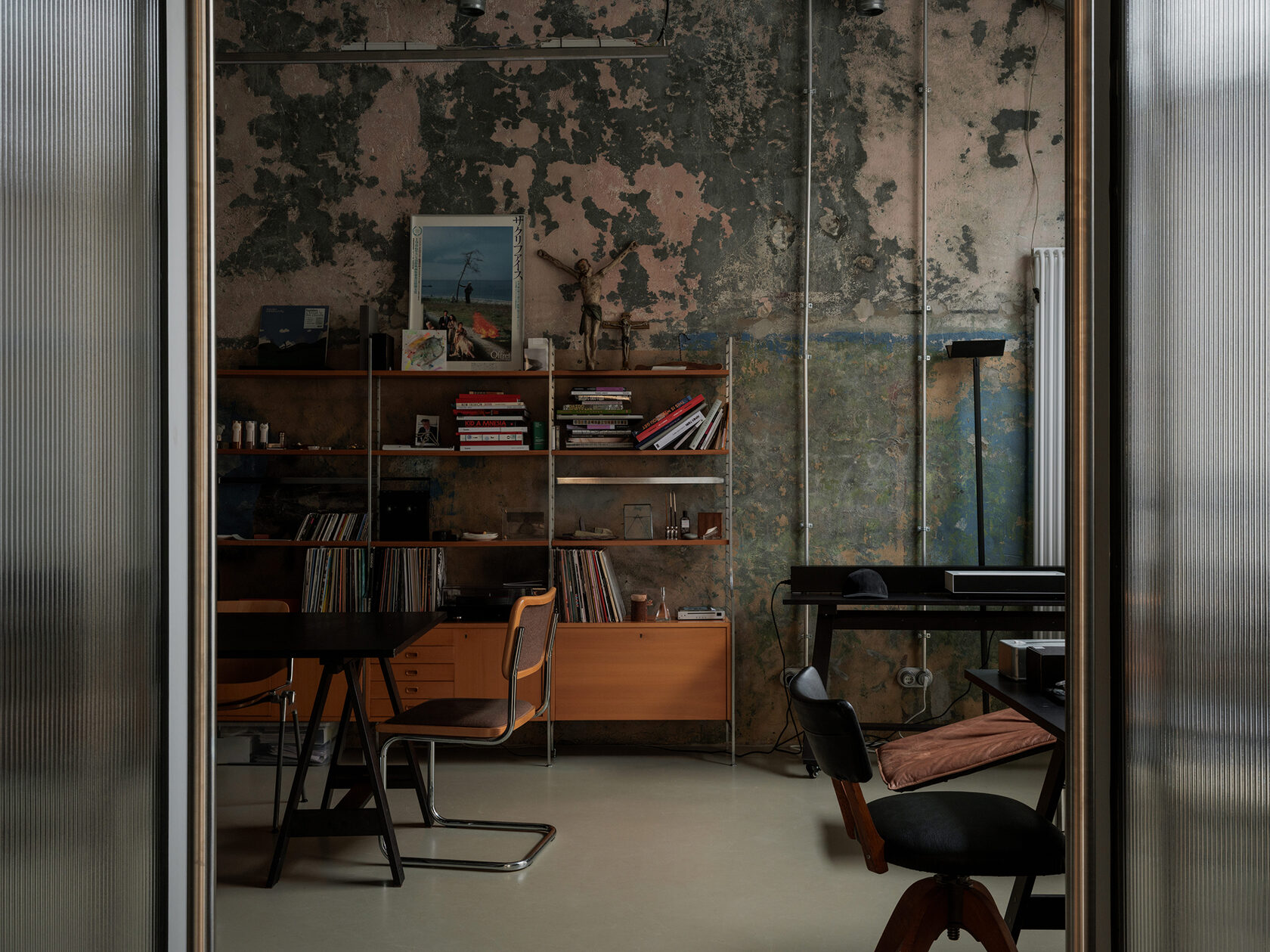 Наполнение пространства происходило совместно. Рейлы, кассовая стойка, большой стол и примерочная были выполнены на заказ по моим эскизам специально для этого проекта. Однако большую роль сыграл Роман (у него точно есть тонкое чувство дизайна и в целом прекрасный вкус). Благодаря ему в интерьере сочетаются как современные предметы, так и винтаж — например, шезлонг Skye 1980-х годов по дизайну Торда Бьерклунда для IKEA или CD-плеер Bang & Olufsen Beosound 9000 середины 1990-х.