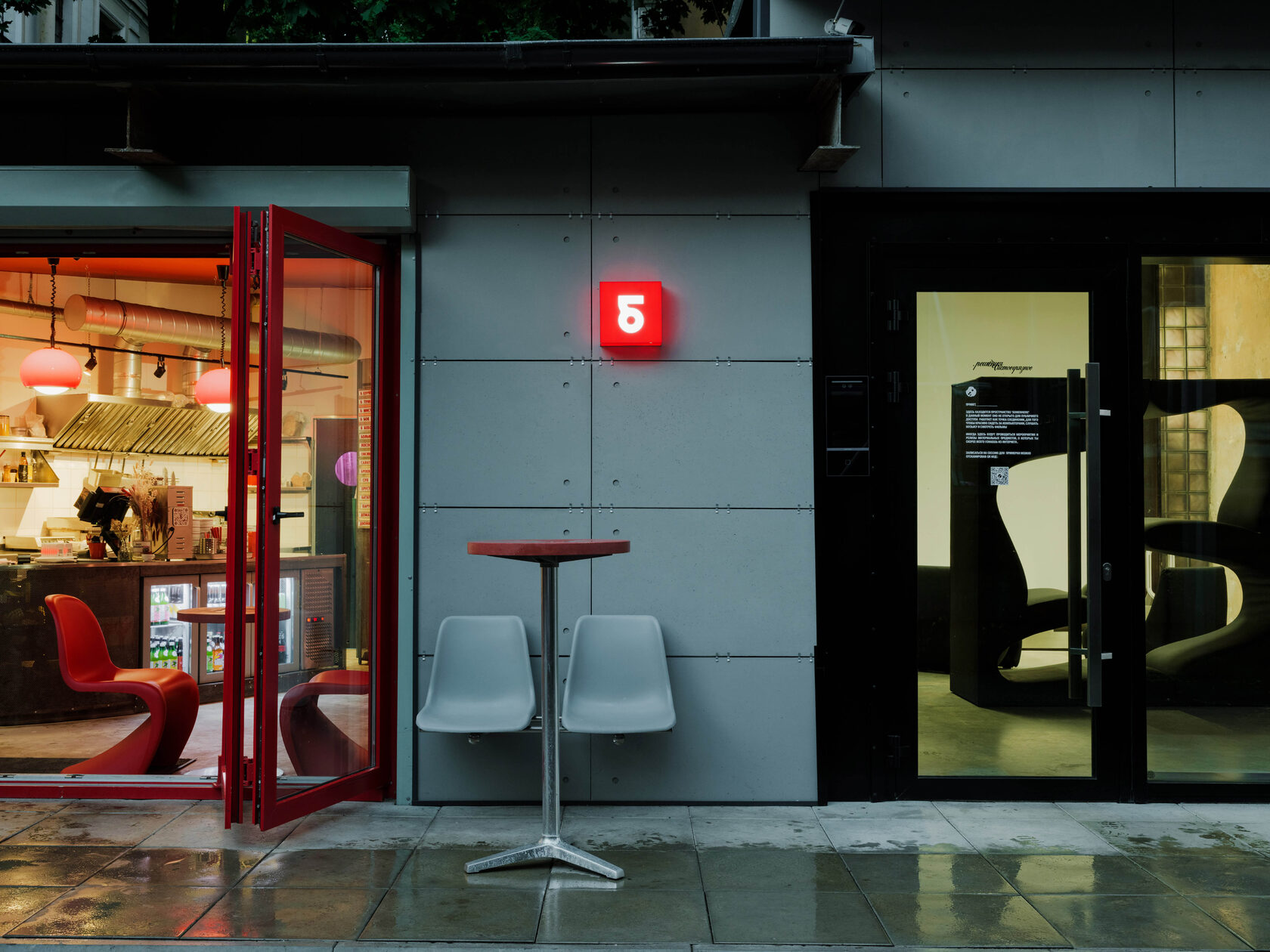 Но почему именно бутерброды? «Просто на букву Б, — признается Иван. — Когда начали искать пространство, Иван Ильинский уже делал у себя на кухне будущие бутерброды на бриоши. Все лето мы присматривались, где можно будет спокойно, без машин посидеть на улице. Из всего, что мы видели, гараж оказался самым перспективным вариантом. Главной задачей было — создать пространство, где мы могли бы вкусно поесть». Запрос для гаража не типичный: пустую коробку из пеноблоков предстояло переоборудовать в кафе. Друзья спокойно решили: «Разберемся!» Арендовали пространство в конце августа 2022-го, открылись в феврале. В итоге, не без помощи архитектора Елены Заикиной, получилось место, не привязанное ни к пространству, ни к времени.